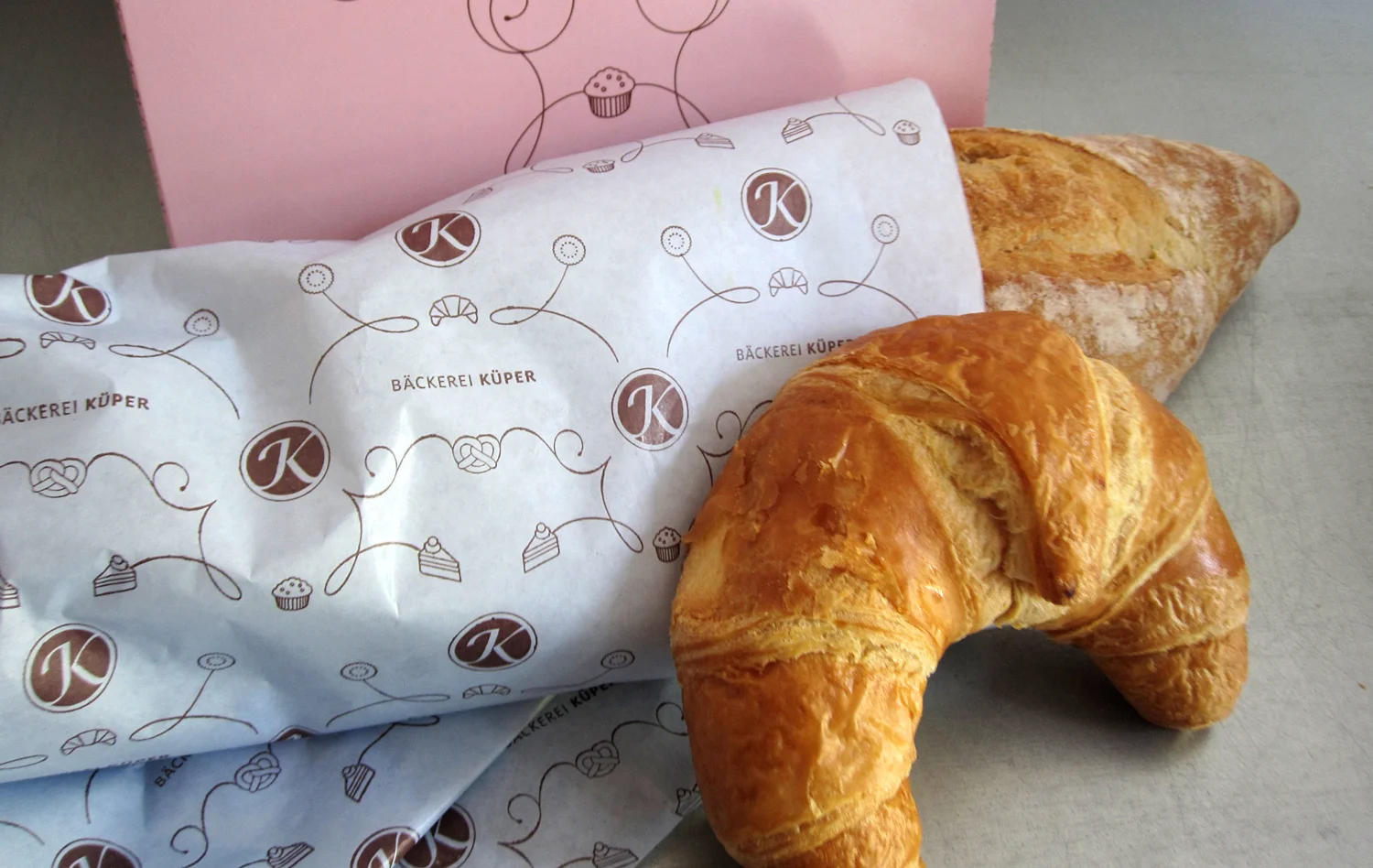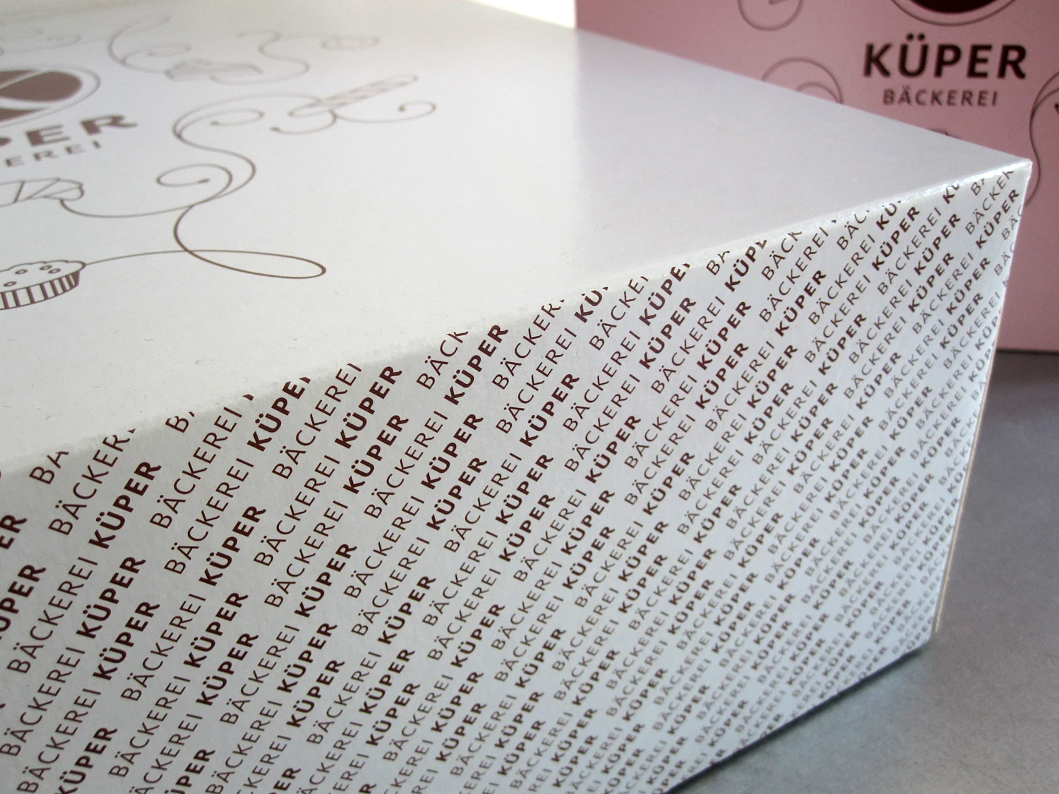 Corporate Design für die Traditions-Bäckerei Küper in Recklinghausen im Ruhrgebiet, die seit Jahrzehnten beliebt ist für ihre Backwaren und Confiserie-Köstlichkeiten. Küper legt wert auf Handwerk und Qualität, vorgefertigte Backrohlinge findet man hier nicht. Die Eier kommen von eigenen Hühnern.