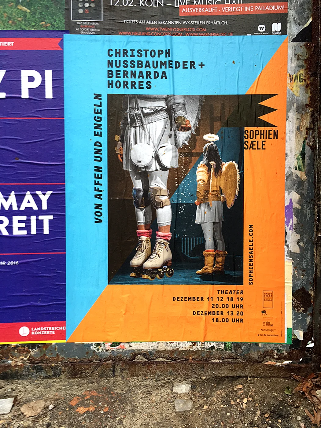 For many years now »Sophiensæle« theatre continues to be a platform for the free theatre scene. It offers a stage for different artists and productions. The programme is diverse and internationally renowned: dance, theatre, performance, live-art. »Sophiensæle« are a well-known and beloved part of Berlin’s cultural landscape. The productions are advertised throughout the city with posters and postcards.